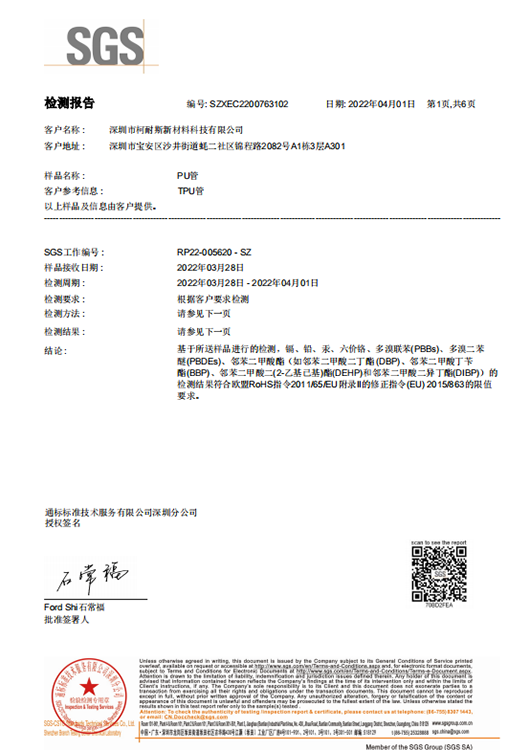 PU管ROHS證書